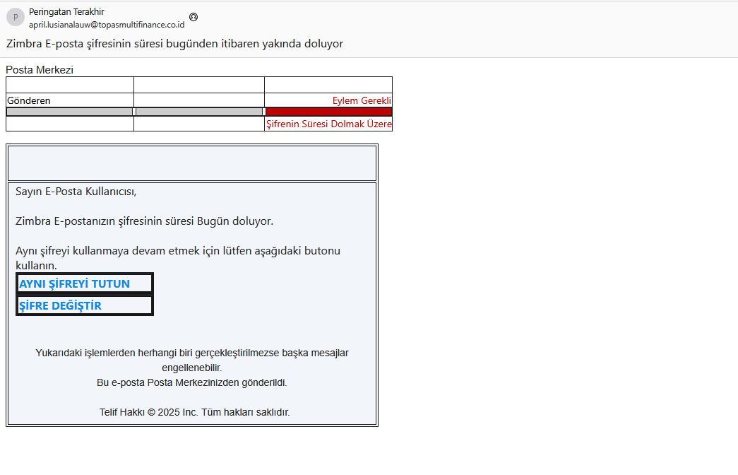 Çeşitli tarihlerde gönderilen aşağıdaki resimdeki e-posta’yı alan tüm personel ve öğrencilerimizin eposta içerisinde bildirilen bağlantıya tıklamadan silmeleri gerekmektedir.