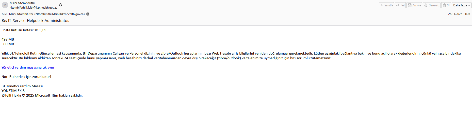 Çeşitli tarihlerde gönderilen aşağıdaki resimdeki e-posta’yı alan tüm personel ve öğrencilerimizin eposta içerisinde bildirilen bağlantıya tıklamadan silmeleri gerekmektedir.