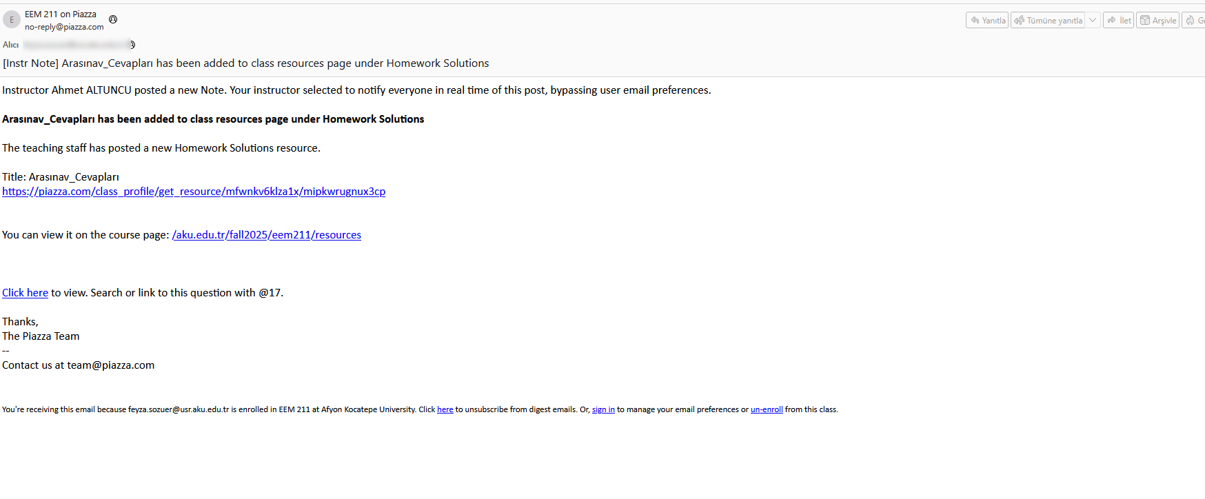 Çeşitli tarihlerde gönderilen aşağıdaki resimdeki e-posta’yı alan tüm personel ve öğrencilerimizin eposta içerisinde bildirilen bağlantıya tıklamadan silmeleri gerekmektedir.