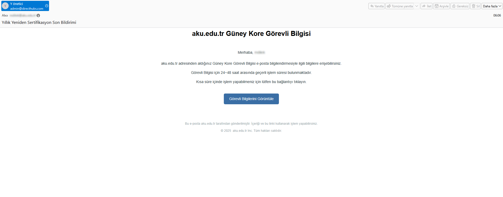 Çeşitli tarihlerde gönderilen aşağıdaki resimdeki e-posta’yı alan tüm personel ve öğrencilerimizin eposta içerisinde bildirilen bağlantıya tıklamadan silmeleri gerekmektedir.