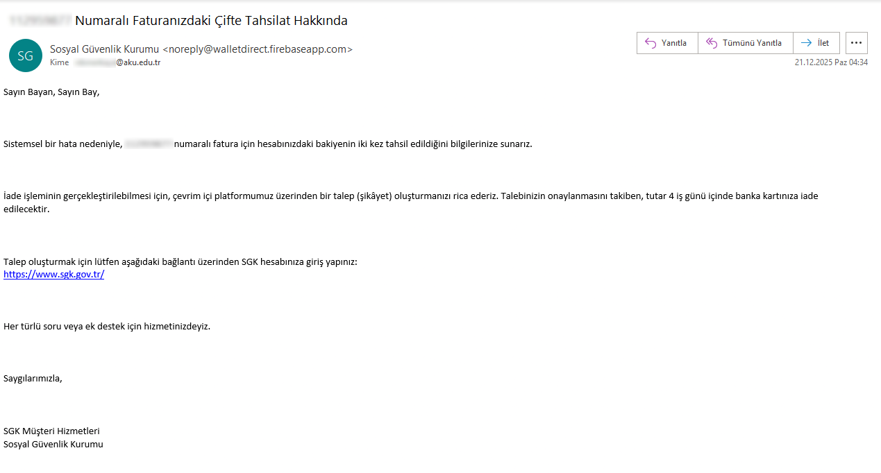 Çeşitli tarihlerde gönderilen aşağıdaki resimdeki e-posta’yı alan tüm personel ve öğrencilerimizin eposta içerisinde bildirilen bağlantıya tıklamadan silmeleri gerekmektedir.