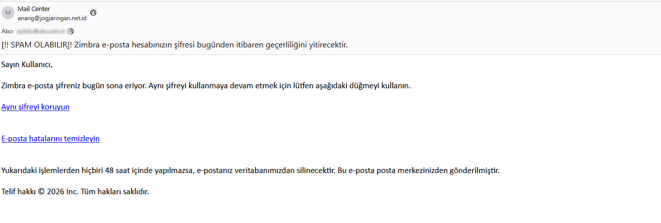 Bilgi İşlem Daire Başkanlığınca e-posta erişim kısıtlaması, devre dışı bırakma, bekleyen ileti olsa vb. işlemlerde hiç bir şekilde link içeren e-posta gönderimi yapılmamaktadır.