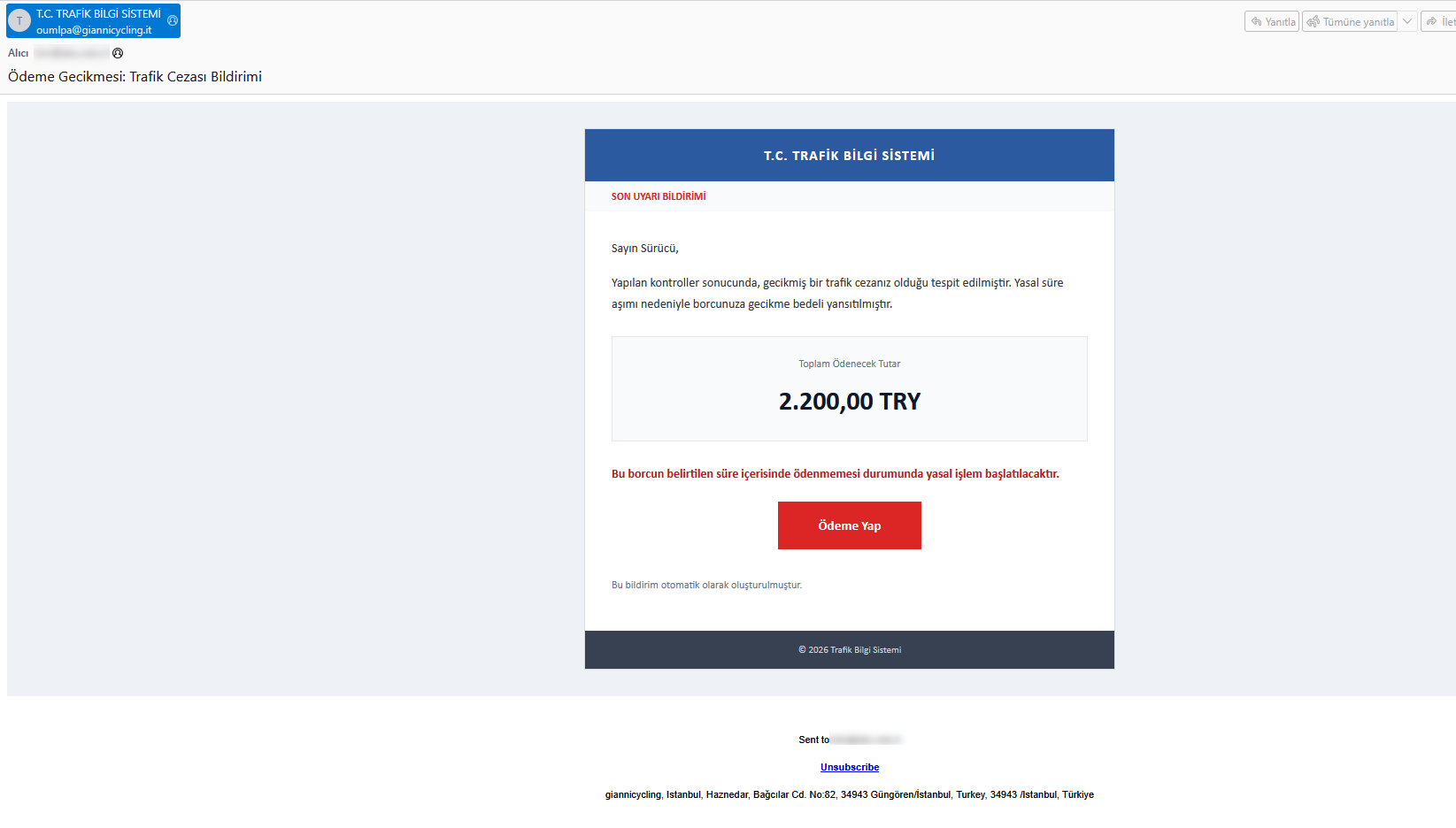Çeşitli tarihlerde gönderilen aşağıdaki resimdeki e-posta’yı alan tüm personel ve öğrencilerimizin eposta içerisinde bildirilen bağlantıya tıklamadan silmeleri gerekmektedir.