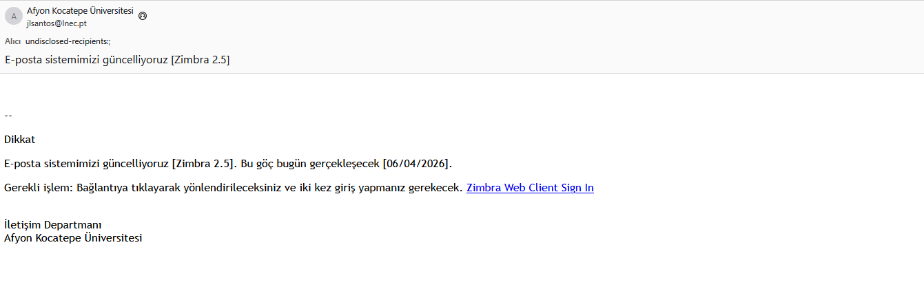 Bilgi İşlem Daire Başkanlığınca e-posta erişim kısıtlaması, devre dışı bırakma, bekleyen ileti olsa vb. işlemlerde hiç bir şekilde link içeren e-posta gönderimi yapılmamaktadır.